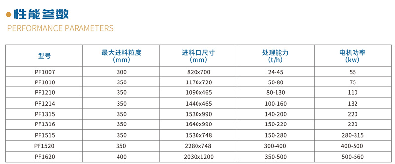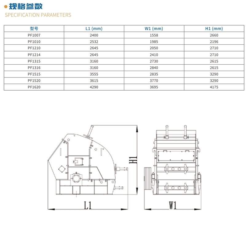 PF反击式破碎机产品是一种节能设备,其特点是破碎作业可充分利用整个转子的能量,依靠高速旋转的板锤打击并抛射物料反复撞击反击板﹐兼有物料之间的撞击使物料得到多次冲击而破碎,故破碎比大,且具有选择性破碎作用。产品多是立方体,粒度均匀,广泛用于建材、化工、煤、焦炭等工业部门破碎石灰石、白云石、页岩、砂岩、煤、石棉岩等作业。